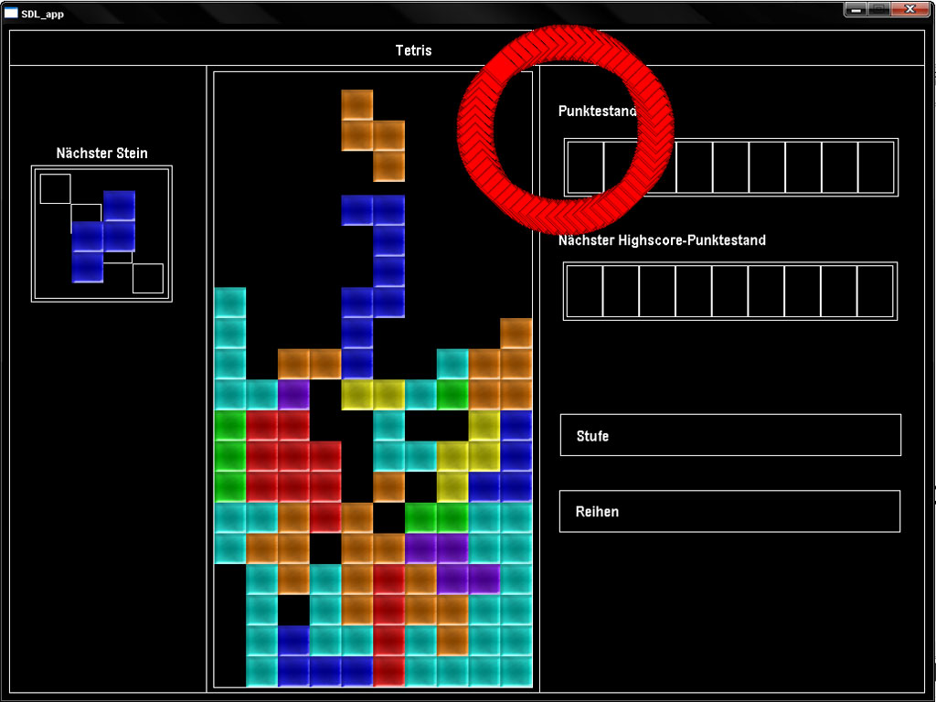 Hier sieht man bereits die ersten Tetrissteine und ein fast perfekt funktionierendes Gameplay.
