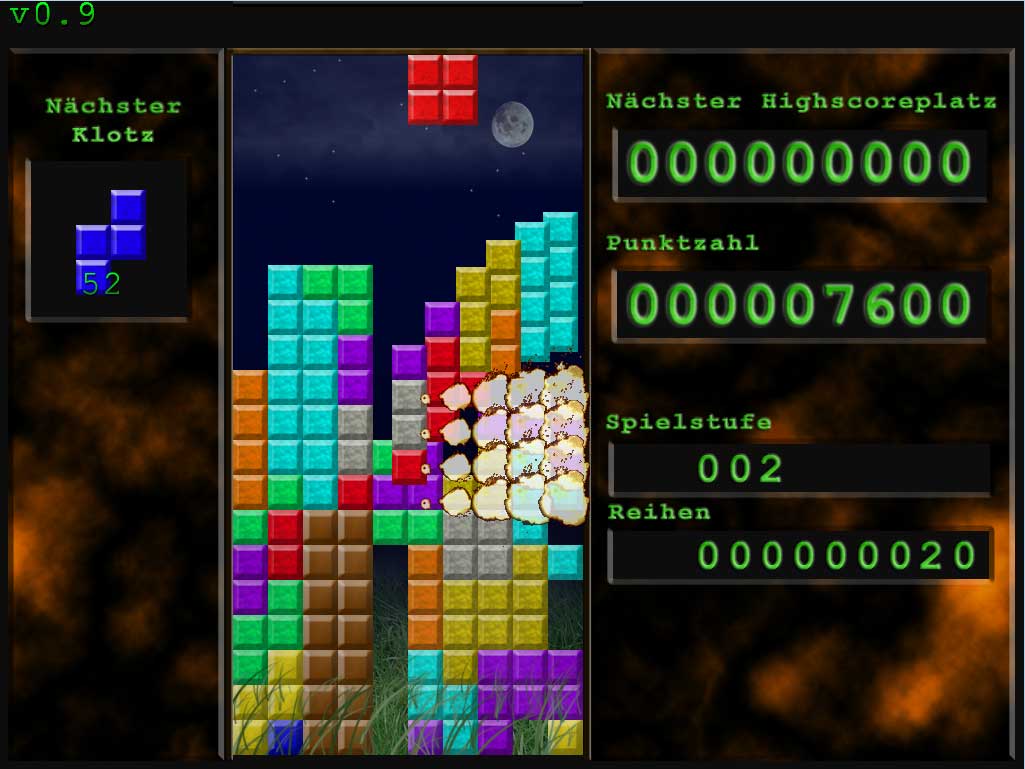 Nach über einem Jahr hab ich Mal ein wenig weitergemacht. Es gibt jetzt ein paar kleine Explosionseffekte und das Spiel steht technisch kurz vor Vollendung.